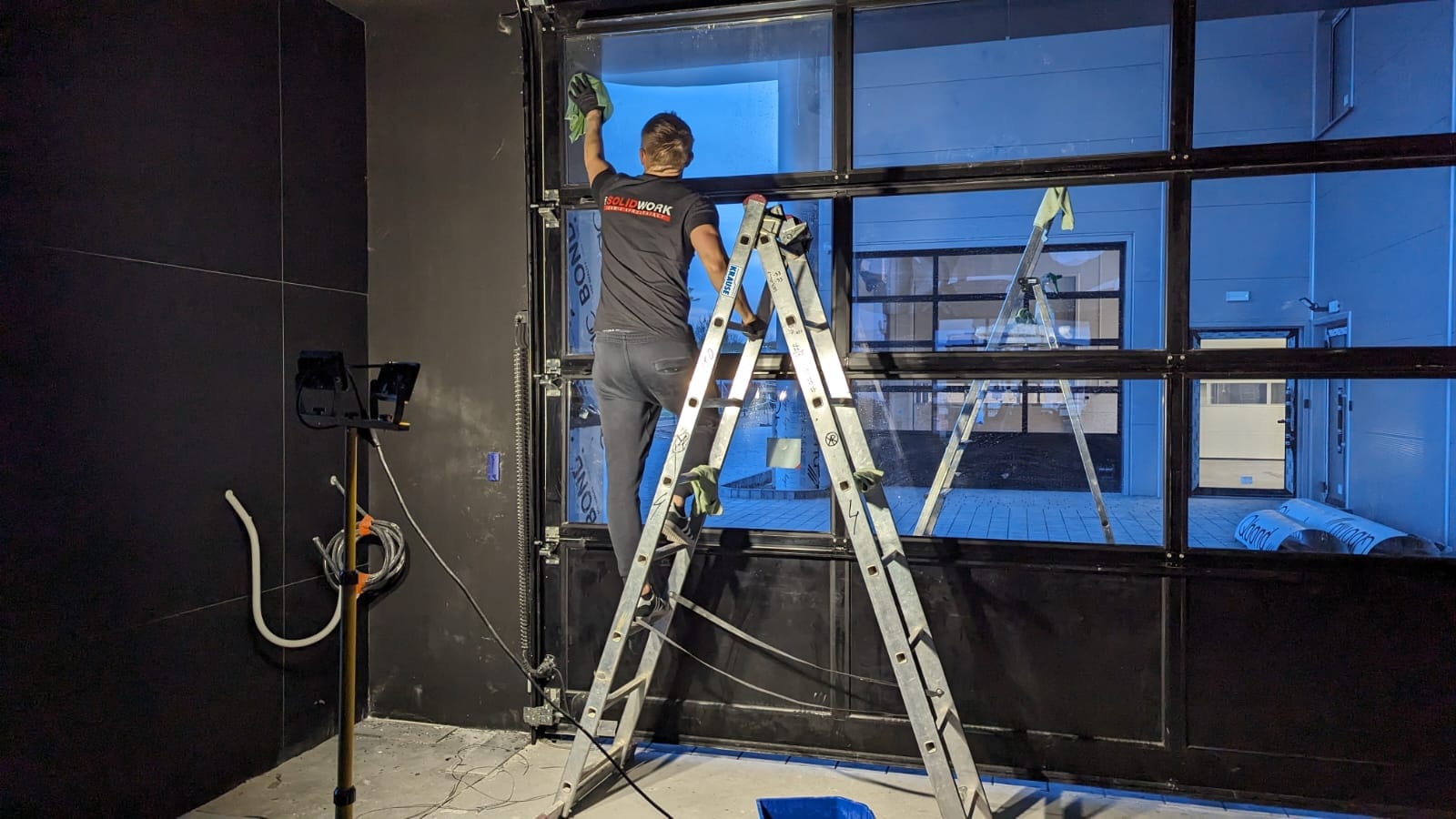 - mycie ogromnych szklanych witryn,