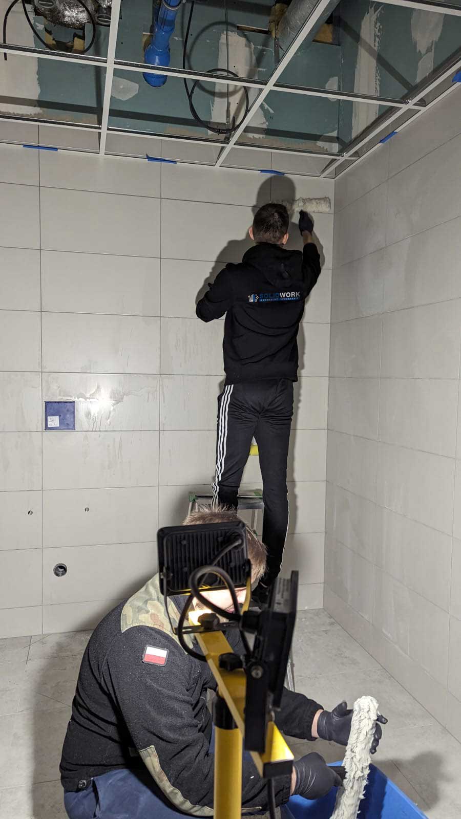 Ze względu na napięty harmonogram odbiorów, prace w tej części często prowadziliśmy w nocy. Zdarzało się, że pracowaliśmy do czwartej nad ranem, aby następnego dnia rano powierzchnie były gotowe dla inspektorów odbierających inwestycję.